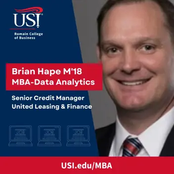 The USI MBA with a concentration in Data Analytics equips professionals with the quantitative problem-solving skills needed to excel in today’s data-driven business world. Learn to harness data and solve complex business challenges as you prepare for positions in data analytics, business operations, and strategic leadership. Recognized for its value and excellence, USI’s AACSB-accredited MBA is in the top 6% of business programs worldwide, and courses are offered in-person or online to accommodate busy working professionals. Enroll in any of our six start dates each year, and experienced faculty will support you every step of the way.