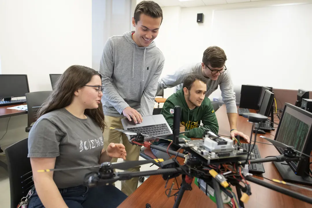 Our computer science program is uniquely housed in a business school. Students not only dive deep into computer fundamentals, but they can take elective business-related courses such as entrepreneurship, management, agribusiness and drones—enhancing their marketability in an ever-changing job market. Students gain additional education from participating in case competitions and joining computer clubs. The CyberSecurity Operations Center (SOC) is a hands-on learning lab where students monitor and intervene in cybersecurity threats to the University. The program culminates in a capstone Senior Project course that solves an actual computer-related challenge for a business or organization, at the local, national, or international level. Projects have included developing self-flying drones, databases, e-business solutions, artificial intelligence, and interactive maps.