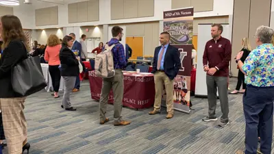 The Regional Teacher Recruitment fair held every spring at USI is one of the largest in the area. Representatives from school districts attend the fair to recruit upperclassmen and recent graduates. This partnership provides greater opportunities to connect students from these schools with school districts from across the nation.