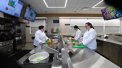 Our interdisciplinary Learning Resource Center houses computers that incorporate software for analyzing recipes, diets or working with data.