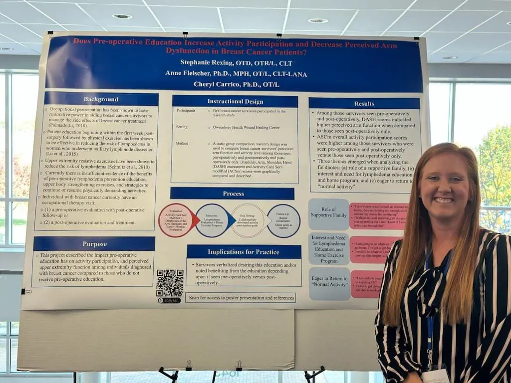 Dr. Stephanie Rexing, Assistant Professor of Occupational Therapy, did a poster presentation, "Does Pre-operative Education Increase Activity Participation and Decrease Perceived Arm Dysfunction in Breast Cancer Patients?"