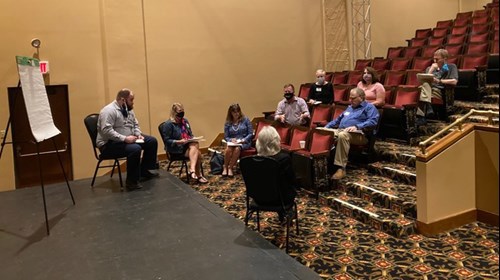 More Perfect Places is a collaboration between director and playwright Seth Bockley, video and installation artist Liz Nofziger, theatre scholar Tanya Palmer and arts integration and education specialist Angela Tillges. While many of the stories at the center of More Perfect Places are inspired by history, this event also invites young people from Southern Indiana to articulate both what they would want to preserve about their communities, and what they would like to transform. As the play was being written in 2020 and 2021, Minnesota-based Arts Education expert Angela Tillges built curriculum and conducted workshops with middle schoolers and high schoolers in Mount Vernon and Huntingburg, Indiana, asking them to envision what a utopia in Southern Indiana would look like today. Their ideas and images will make up a part of the experience of More Perfect Places, which will feature a cast of IU Theatre students alongside professional actors from across the Midwest. Paoli, Indiana, based musician and composer Andrew Gerber is creating an original score for the play, and local New Harmony musician Liz Mumford and her band Blue Harmony will join in for a post-show community celebration.