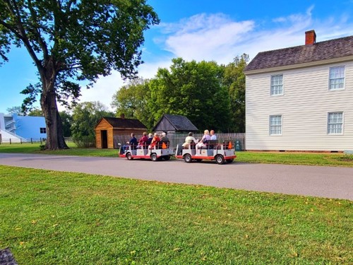 We are so happy to share that in addition to our usual New Harmony History Tour, we are introducing a new tram tour of New Harmony. This family-friendly tour takes you on a 45-minute exploration of New Harmony aboard our tram. As you travel around town, an interpreter will offer their local insight, telling stories and showing you the "can't miss" spots and iconic sites that contribute to a great New Harmony experience. This tour would be perfect for first-time and returning visitors, residents with out-of-town guests, and anyone who just wants to learn more about the community.