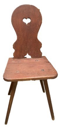 Presented in the exhibition are two pieces of furniture, a “peasant” plank chair and a formal decorated chair from a set of six, from collector Patty Clendennen and her late husband, Bob of Beaver Falls, Pennsylvania, 40 miles northwest of Pittsburgh, Pennsylvania. The Clendennens are considered experts in Harmonist furniture, pieces from their private collection now belong to Historic New Harmony and are on display in the David Lenz House.