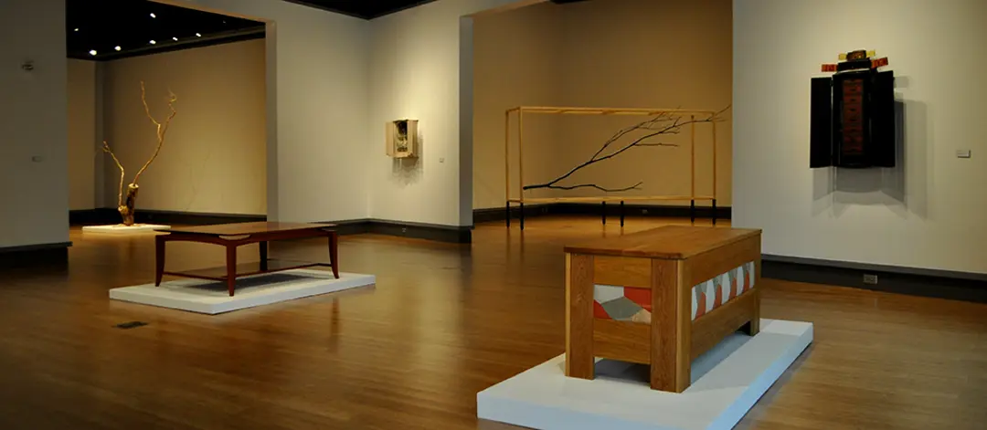 The Chair: writ small is an invitational exhibit featuring tiny chairs created by 13 artists: Clinton Bosler, Tylar Dean, Megan Elleser, Reagan Furqueron, Alex Greer, Katie Hudnall, John McNaughton, Rob Millard-Mendez, Tim Pewe, Nancy Raen-Mendez, Cory Robinson, Brian Simpson, and Curt Uebelhor. The show represents a broad spectrum of interpretations of chairs, from realistic to abstract. The invited artists have made work in a wide array of media and styles. The chair is an archetypal form. Artists and designers have used the chair as a jumping off point for many different works. This exhibition showcases intriguing, well-crafted works that are based on chair forms. The invited artists have created thoughtful, conceptually rich works with a wide range of tones, from humorous to serious.