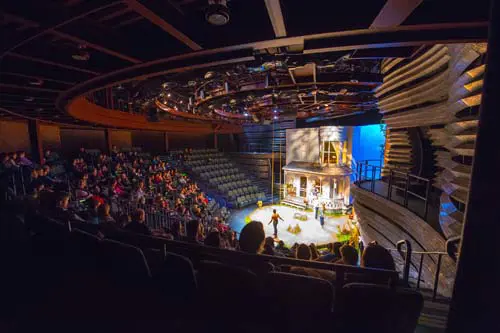 The USI Performance Center was constructed using locally-sourced and recycled materials. In addition, the theatre includes: