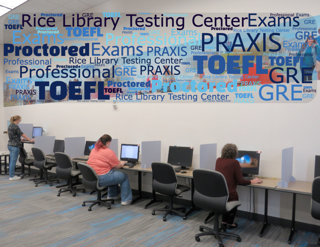 Students who need to take any exam outside of the classroom setting and wish to test in Rice Library Testing Center should contact their professor before registering for a time to test. The professor needs to be aware of your request, and they must enter information into RegisterBlast in advance of the student registering for a test they will provide.