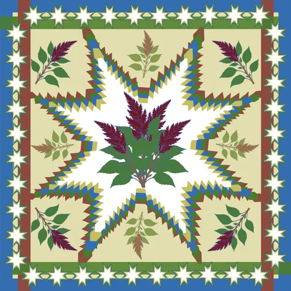 Sharp observes, “In this exhibition, I am showing a series of new work with select illustrations of plant life connected to women’s labor and lives from different phases of New Harmony’s timeline, including plants harvested and cultivated before and during the settler colonial era by native peoples; plants cultivated during the Harmonist period; and plants harvested, cultivated and imported during the Owen-Maclure and ‘afterglow’ periods. I adapt these drawings into hand and machine embroideries and tapestries that reference textile works found in the Working Men’s Institute Archives and a series of silk scarfs inspired by descriptions of traditional Battenberg accessories worn by Harmonist women and silk designs produced by Gertrude Rapp found in the USI - Historic New Harmony collection.