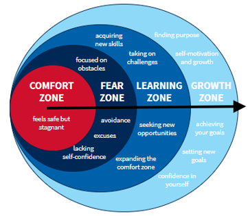 A growth mindset is believing your abilities can be developed through dedication and hard work. This requires you to move from your comfort zone to your growth zone.