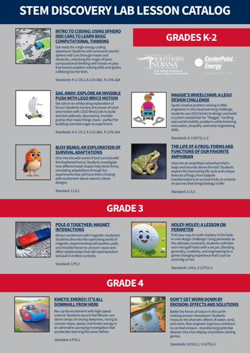STEM Lesson Selection - Our activities align with grade level-specific academic standards but can often be adapted for one grade above or below. A printable link can be accessed here.