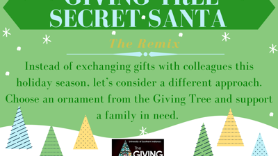 You may pick up gifts on Thursday, December 11 and Friday, December 12, 2025. If you have any questions concerning the application form, please contact Abby Yates (812) 465-1281 aeyates1@usi.edu or Staff.Council@usi.edu.