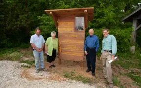 Westwood Garden Club spent nearly 15 years making improvements in conservation and preservation at USI that can be seen on the trails and in the Outdoor Education Center. Today, the trail system includes a stone lodge that was original to the property, a restored 1800s log house and Appalachian barn, a turn of the century brick schoolhouse and a natural amphitheater.