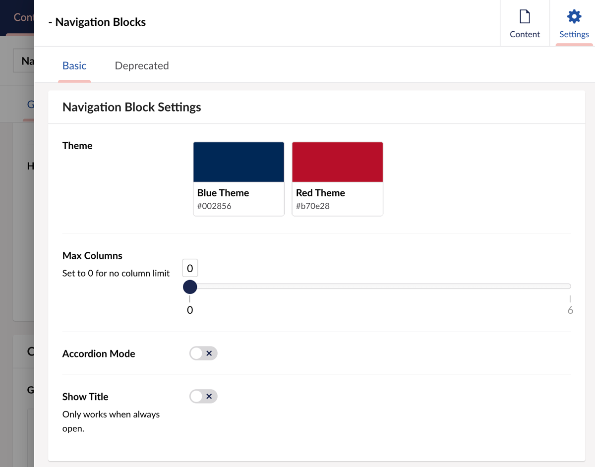 Max Columns: This lets you set how many blocks to appear. For example, if you want a vertical column of links, you would choose 1.