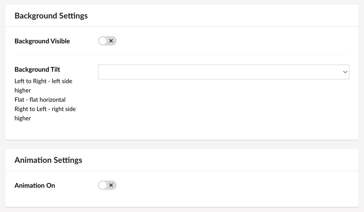 Background Tilt: Lets you choose a style that adds a slight angle to the edge of your background. Choose Left to Right; Right to Left; or Flat.